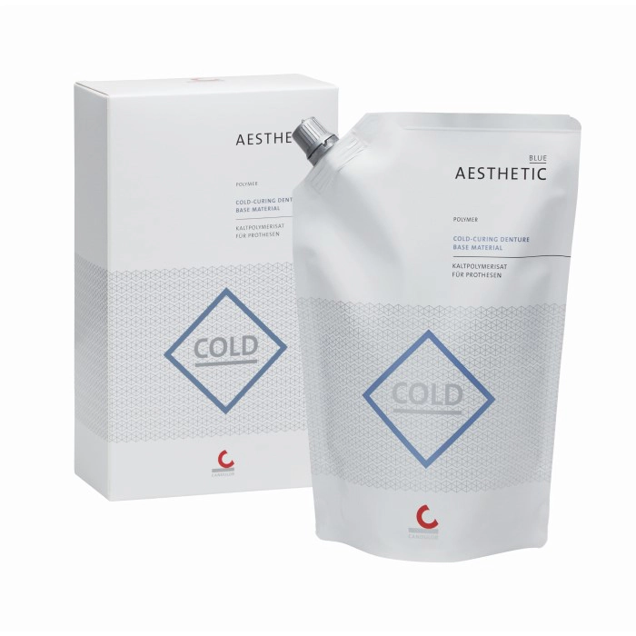 Self-curing AESTHETIC BLUE excels in particular through its good flow and modelling properties. This assures simple processing by both the cast and packing technique, even in case of two or more saddles. Different opaque shades, pink transparent and clear are available.