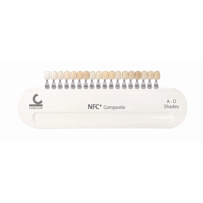 The 16 A–D shades and the 2 Bleach shades BL2 and BL4 can be determined with the PhysioStar® NFC+ A– D shade guide.