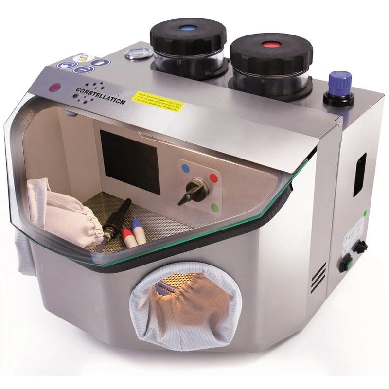 Pjeskara ConstellationObitelj Constellation obuhvaća niz modularnih pjeskara koje se mogu prilagoditi potrebama većine profesionalaca.Modeli imaju 2, 3 i 4 komore za pijesak, što ovaj stroj čini vrlo svestranim alatom u dentalnom laboratoriju. Glavne karakteristike pjeskara "Constellation":Postolje od nehrđajućeg čelika AISI 304 sa širokim staklenim prozorom.Pištolj za puhanje unutar komore, vrlo koristan pri čišćenju.LED sustav rasvjete.Modularni sustav, mogućnost proširenja u budućnosti.Ventil za promjenu komore unutar komore.Rasteretni ventil koji zaustavlja protok zraka kad se otpusti pedala, čime se štedi pijesak.Ergonomska pedala spojena na stroj fleksibilnom cijevi.Tehničke specifikacijeVisina: 280 mmDubina: 390 mmŠirina: 440 mmTežina: 12,5 kgRadni tlak: 2-5 barMaksimalna potrošnja zraka: 80 l/minNapon: 230 V, 50/60 HzPotrošnja: 20 W