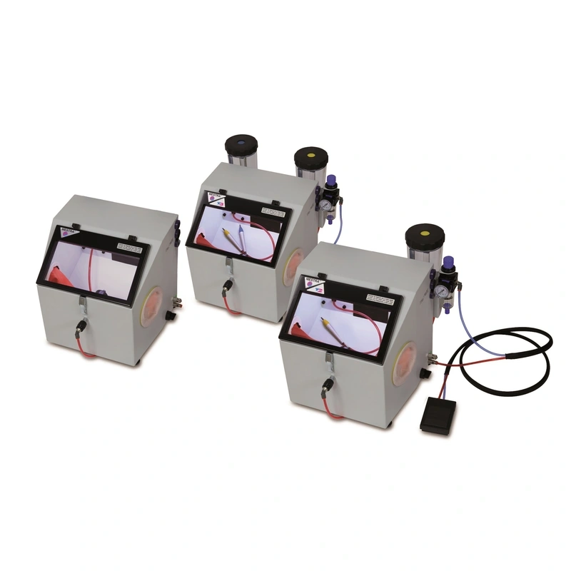 Pjeskara TerraIma samo fiksnu mlaznicu.Slične karakteristike kao i kod poznatih modela T1-T2-T3, ali s velikom razlikom: TERRA pjeskare imaju veću komoru i snažniju rasvjetu.Osim toga, položaj otvora za umetanje ruku modificiran je kako bi se omogućio ergonomičniji rad.Tehničke specifikacijeVisina: 335 mmDuljina: 380 mmŠirina: 340 mmTežina: 7,5 kgNapon: 230V, 50/60 HzPotrošnja zraka: 100 L/minIzvor svjetla: LED 6 W